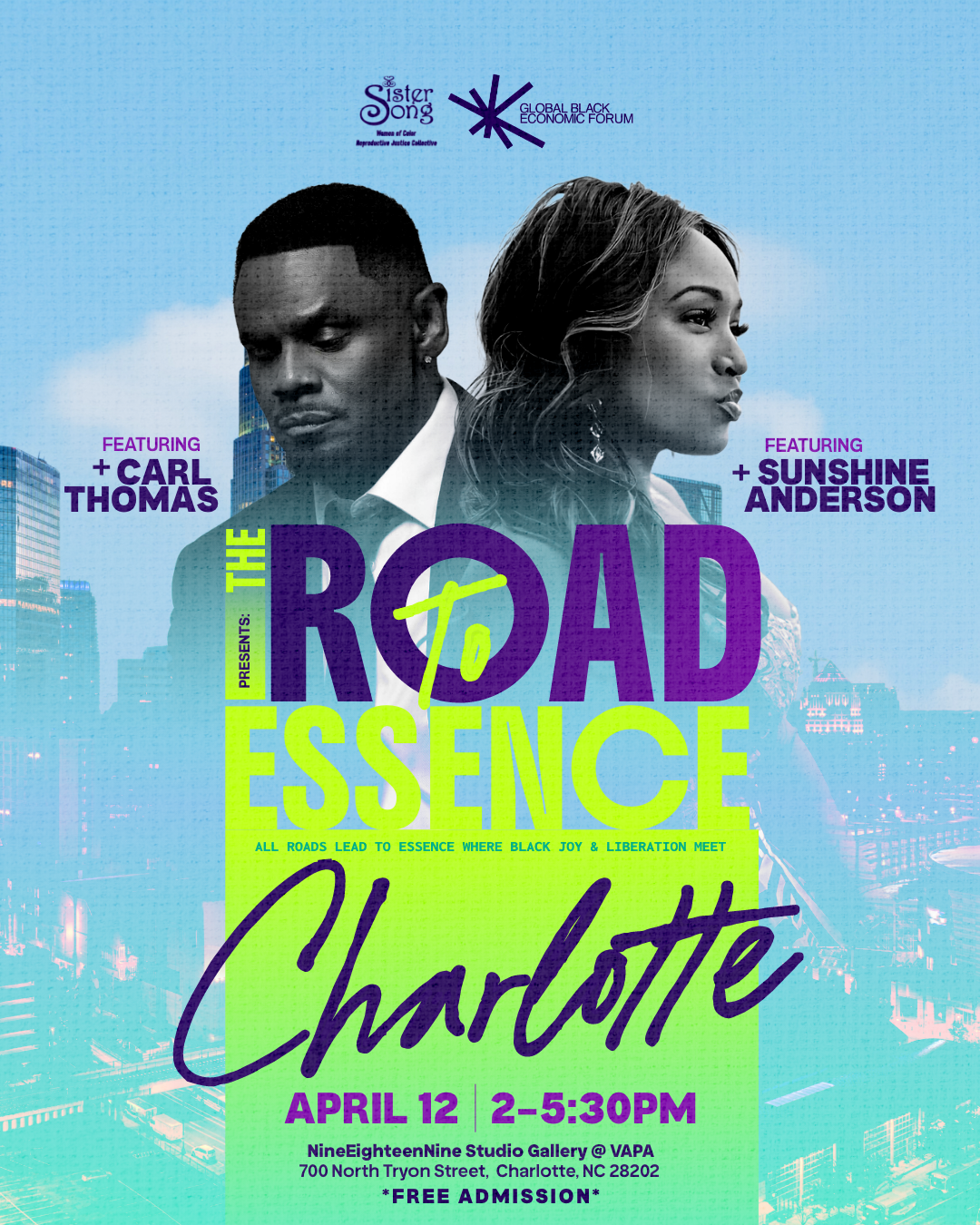 On the first stop of the Road To Essence national tour in Charlotte, North Carolina, in partnership with The Global Black Economic Forum, SisterSong welcomes Carl Thomas and Sunshine Anderson — two artists who have been using their voices to tell stories and uplift the culture — to the movement.